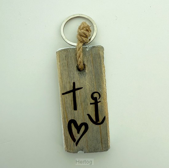 Geloof, hoop, liefde - sleutelhanger steigerhout