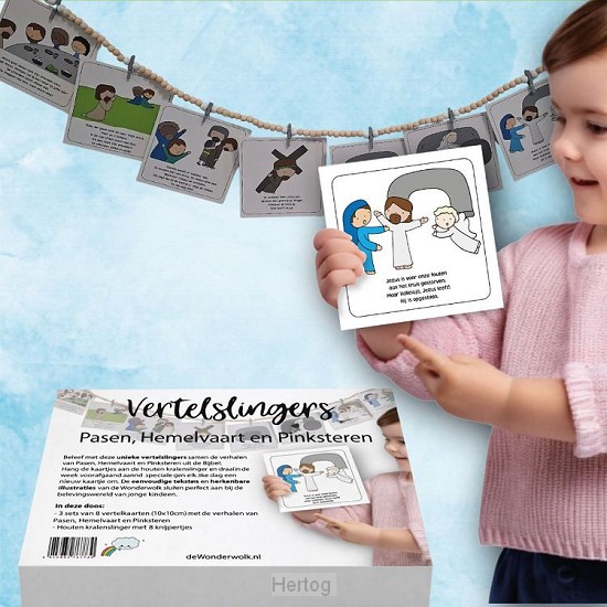 Vertelslinger - Beleef met deze unieke vertelslingers samen de verhalen van Pasen, Hemelvaart en Pinksteren. Hang de kaartjes aan de houten kralenslinger en draai in de ...