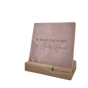 Je bent een parel in Gods Hand - roze tegel met houder