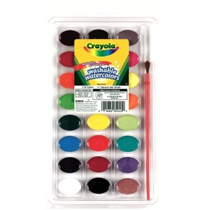 - 24 heldere kleuren van gebruiksklare, afwasbare waterverf die soepel mengt. Inclusief penseel, zodat kleine kunstenaars meteen kunnen beginnen met schilderen.