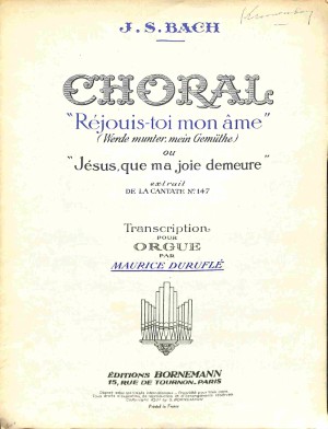 Choral 'Réjouis-toi mon âme' ou 'Jésus, que ma joie demeure' - Tweedehands notenschr