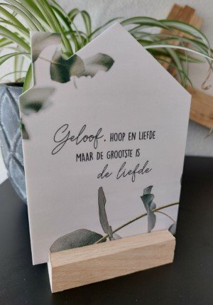- Geprint huisje met mooie tekst. Dit huisje wordt geleverd inclusief standaard. Een passend cadeau voor ieder moment!