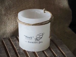 'Maak' alles vast met Geniet-jes - windlicht S ivoor