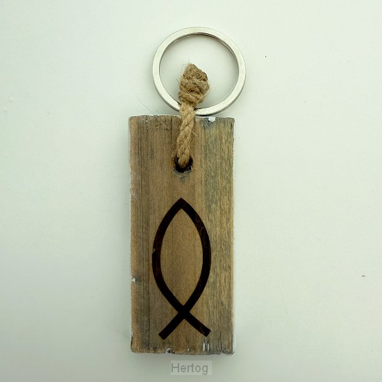 Ichtusvisje - sleutelhanger steigerhout