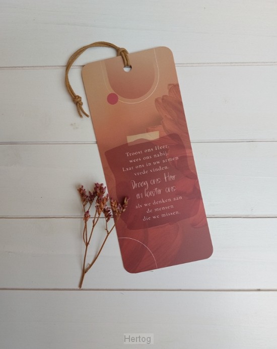 - Boekenlegger met opdruk: Leg je leven in Gods hand, dan draagt Hij je ieder dag
