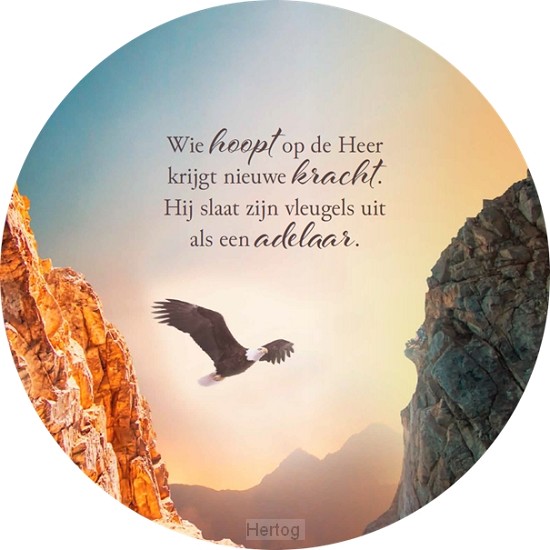 - Muurcirkel met opdruk: Wie hoopt op de Heer krijgt nieuwe kracht. Hij slaat zijn vleugels uit als een adelaar.