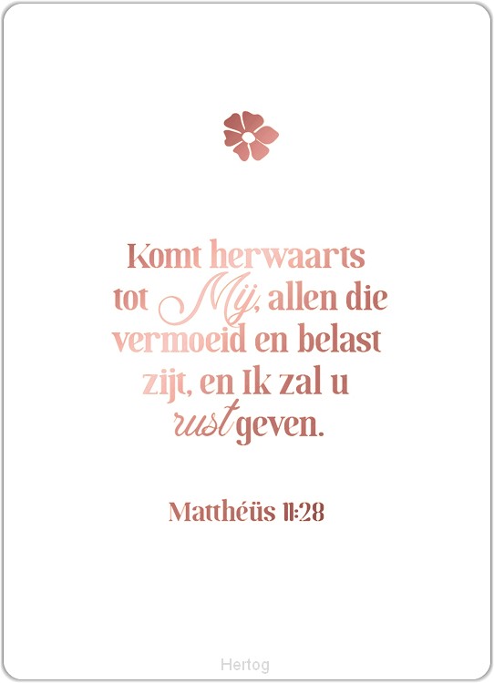 Bijbeltekst: Komt herwaarts tot Mij, allen die vermoeid en belast zijt, en Ik zal ...