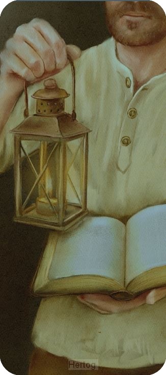 - Boekenlegger met afbeelding: Man met lantaarn
