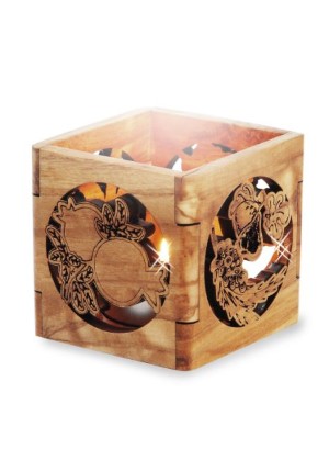 - Olijfhouten waxinelichthouder met sterren.