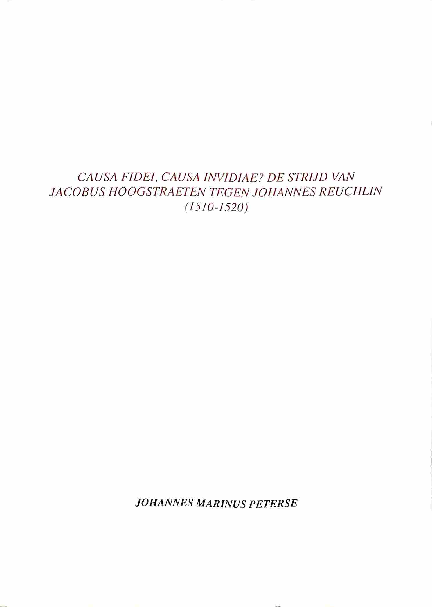 Causa fidei, causa invidiae? De strijd van Jacobus Hoogstraeten tegen Johannes Reuchlin (1510-1520)