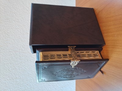 Zakbijbel klein met psalmen, leer, duimgreep en koper slot klassieksje