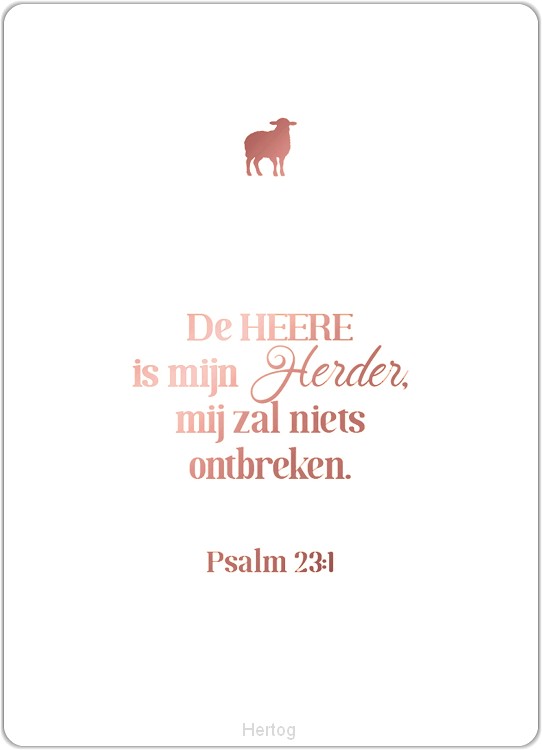 Bijbeltekst: De HEERE is mijn Herder, mij zal niets ontbreken. - Psalm 23:1b (SV) ...